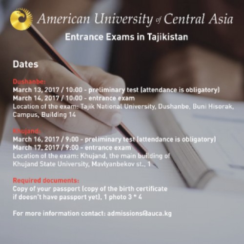 АУЦА проведет вступительные экзамены с 13 по 17 марта в Таджикистане